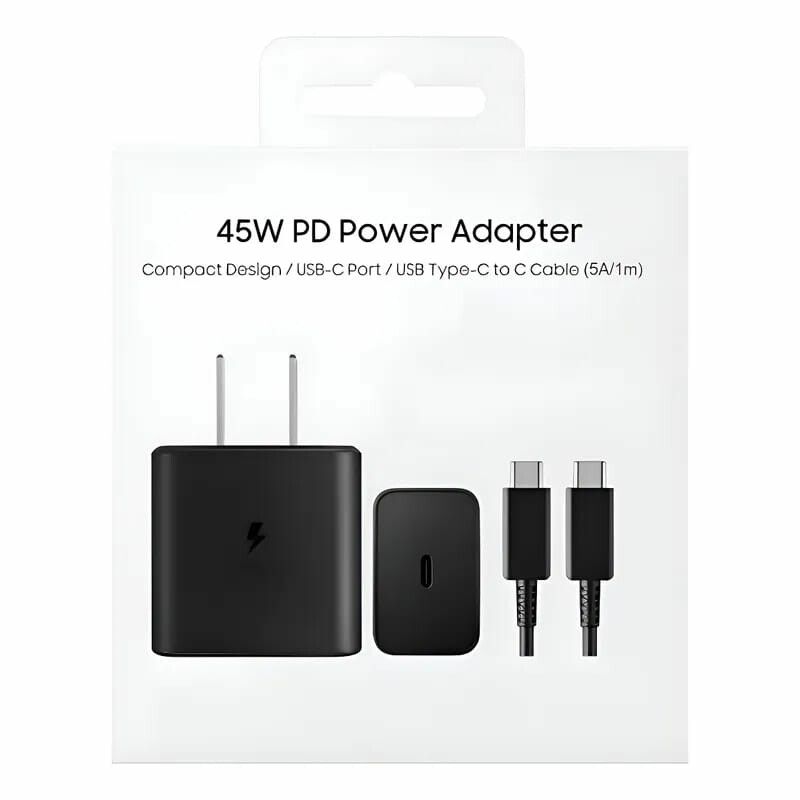 CARGADOR COMPLETO SAMSUNG 45W TIPO C CALIDAD ORIGINAL+CABLE C A C NEGRO