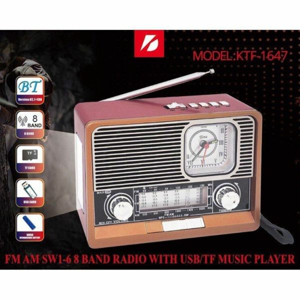 RADIO PARLANTE BT 4 BANDAS DISEÑO MADERA MARRON KTF-1647